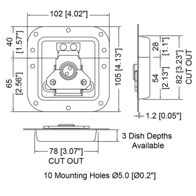 Dit medium inbouw vlinderslot heeft een 10mm diepe schotel en meet 105x102mm. Het slot is gemaakt van staal en heeft een zinken kleur.
